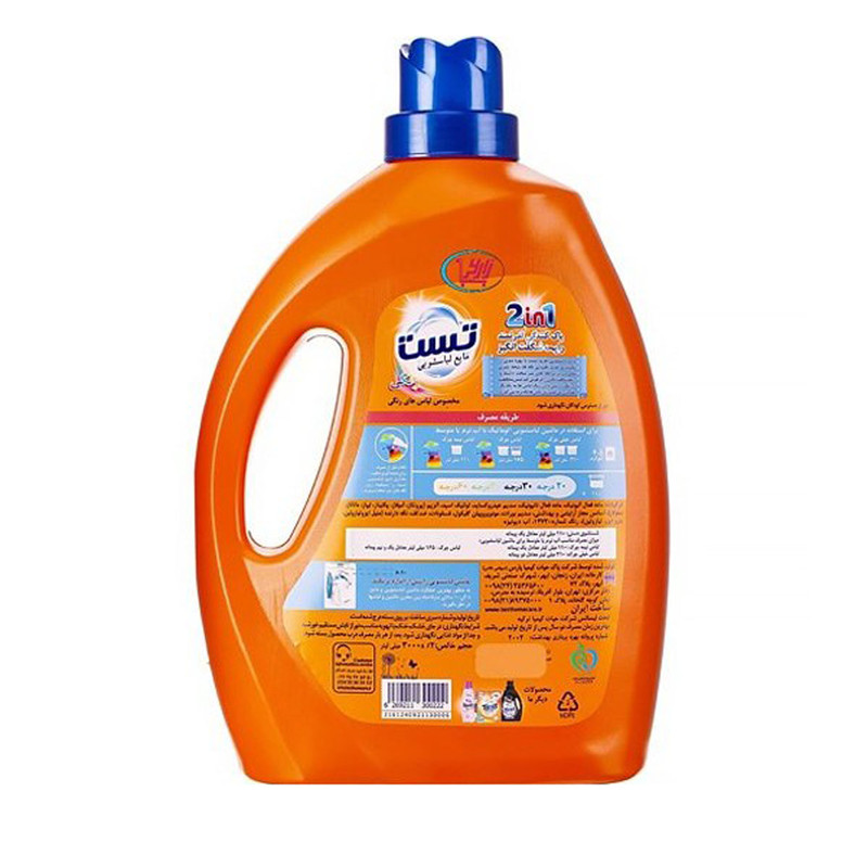 مایع لباسشویی تست دارای رایحه گل های بهاری با خاصیت لکه زدایی، چربی زدایی، سفید کنندگی